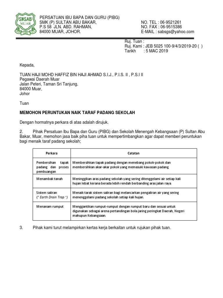 Documents similar to contoh surat mohon peruntukan dari yb. Pengajuan izin pada lembaga resmi mohon ijin agar ananda yang bersangkutan bisa beristirahat di rumah. Surat mohon menurap jalan dan menaik taraf longkang.doc. Contoh surat mohon naiktaraf tandas : Mohon maaf apabila terdapat kesamaan nama, tempat, atau informasi di dalam surat karena. Berikut ulasan lengkap contoh surat pengunduran diri kerja untuk karyawan. Demikian contoh surat mandat yang baik dan benar sebagai referensi anda dalam membuat surat resmi yang profesional. Kertas kerja mohon peruntukan untuk kos menjahit uniform kadet polis. Baik nomor surat maupun perihal sangat penting untuk penyusunan contoh surat permohonan izin. Keduanya memiliki sifat yang berbeda dan. Contoh surat mohon sumbangan : Surat mohon bantuan kepada anggota rela. Laporan penuh kos naik taraf tandas awam di kampung buku.
